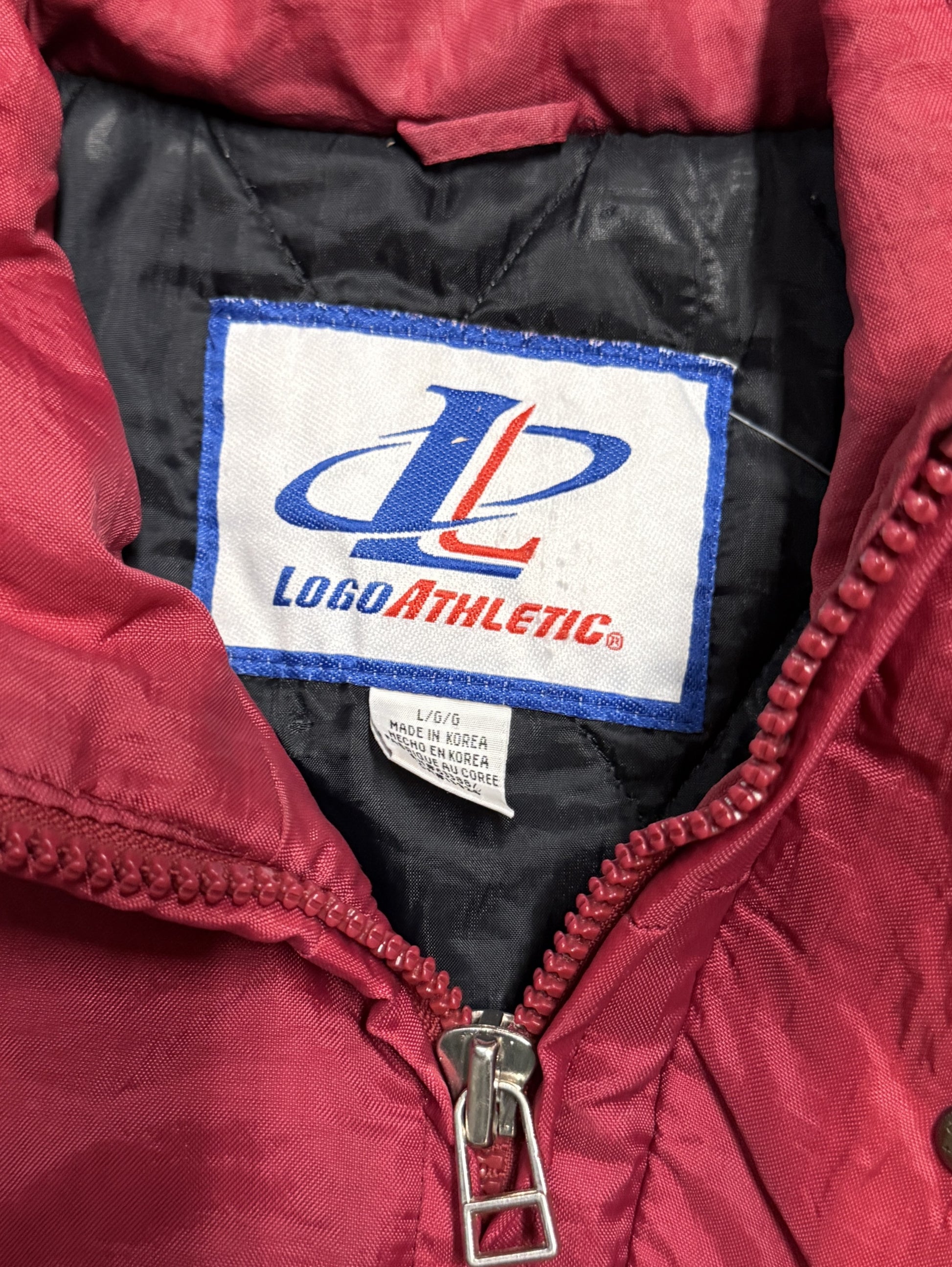 Logo Athletic Jacket in great condition. Missing detachable hood. No major flaws. Refer to measurements Pit to pit: 25" Neck to waist: 25"